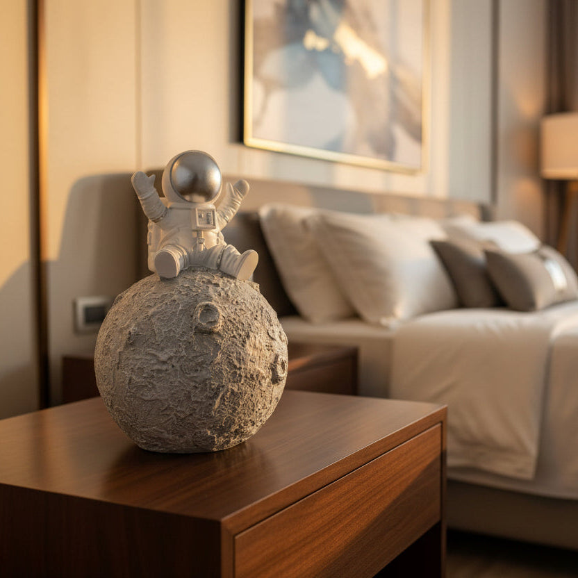 Un viaje espacial en tu hogar 🌕. Nuestro astronauta sentado en la luna de resina, te lleva a un mundo de aventura y exploración 🚀.