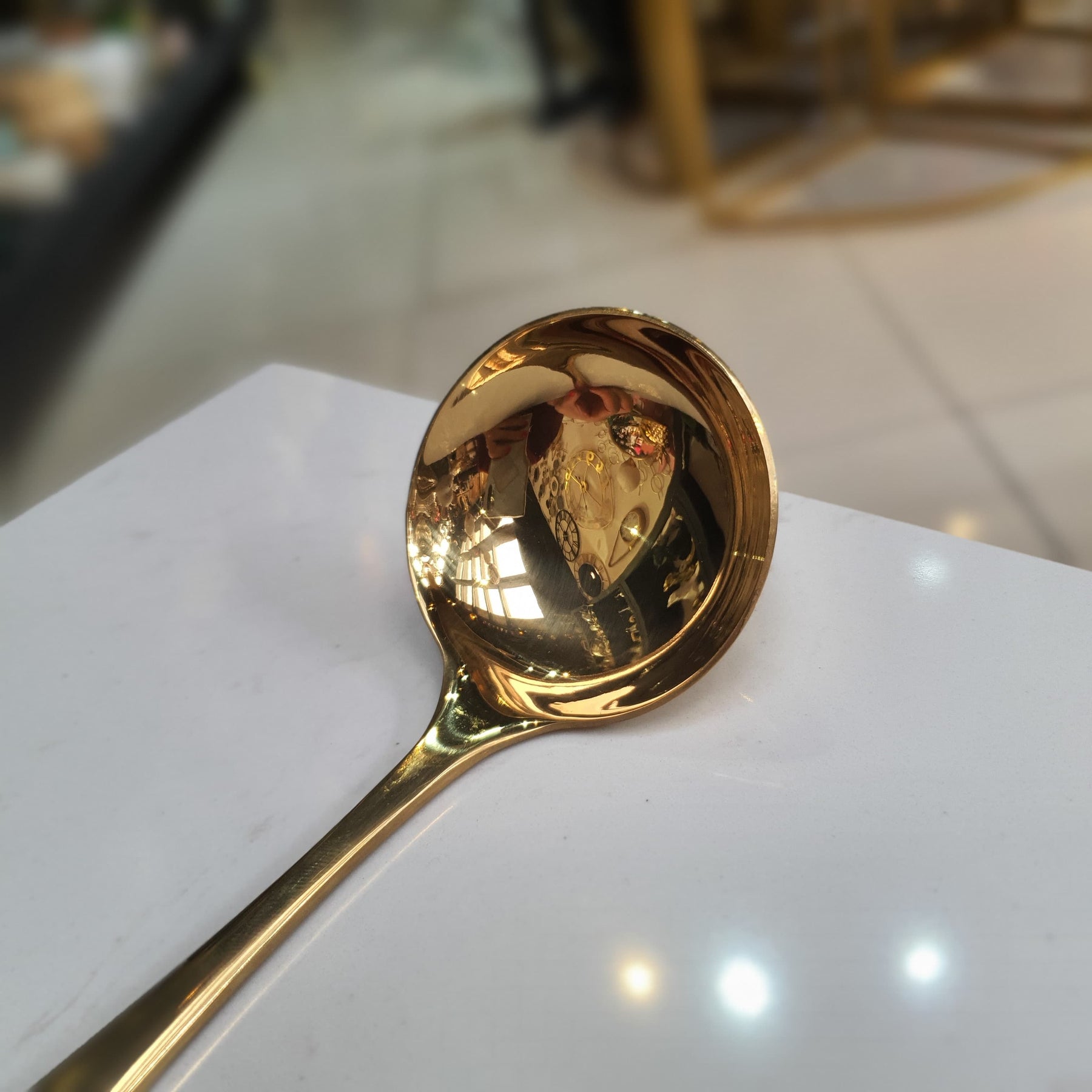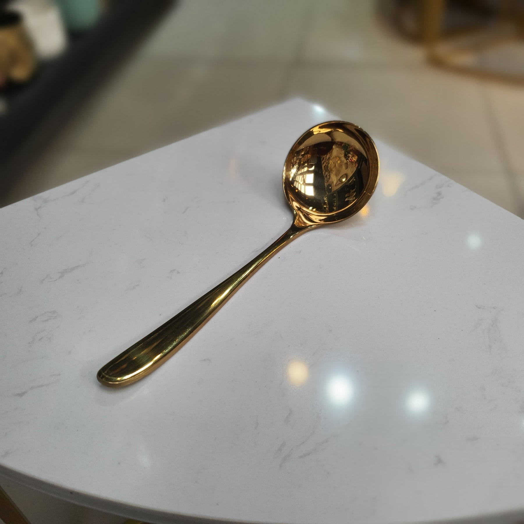Con un acabado color dorado impecable, este cucharón combina elegancia y funcionalidad. Su diseño sofisticado lo hace ideal para servir sopas, salsas o guisos con un toque de lujo. Perfecto para quienes buscan utensilios refinados que realcen la presentación de su mesa.