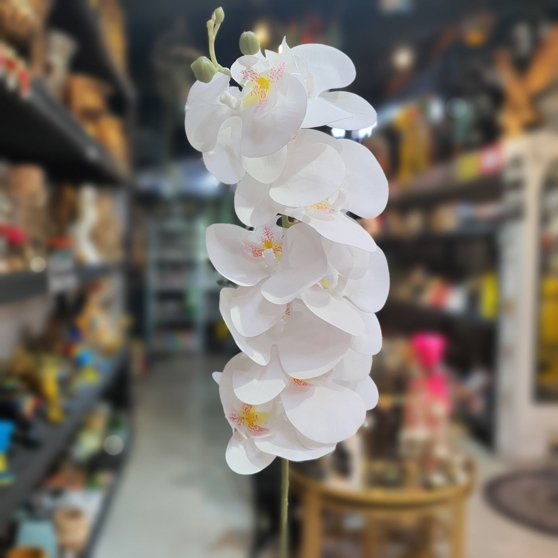Rama de orquídea artificial perfecta para arreglos florales elegantes o como pieza decorativa atemporal en cualquier espacio.