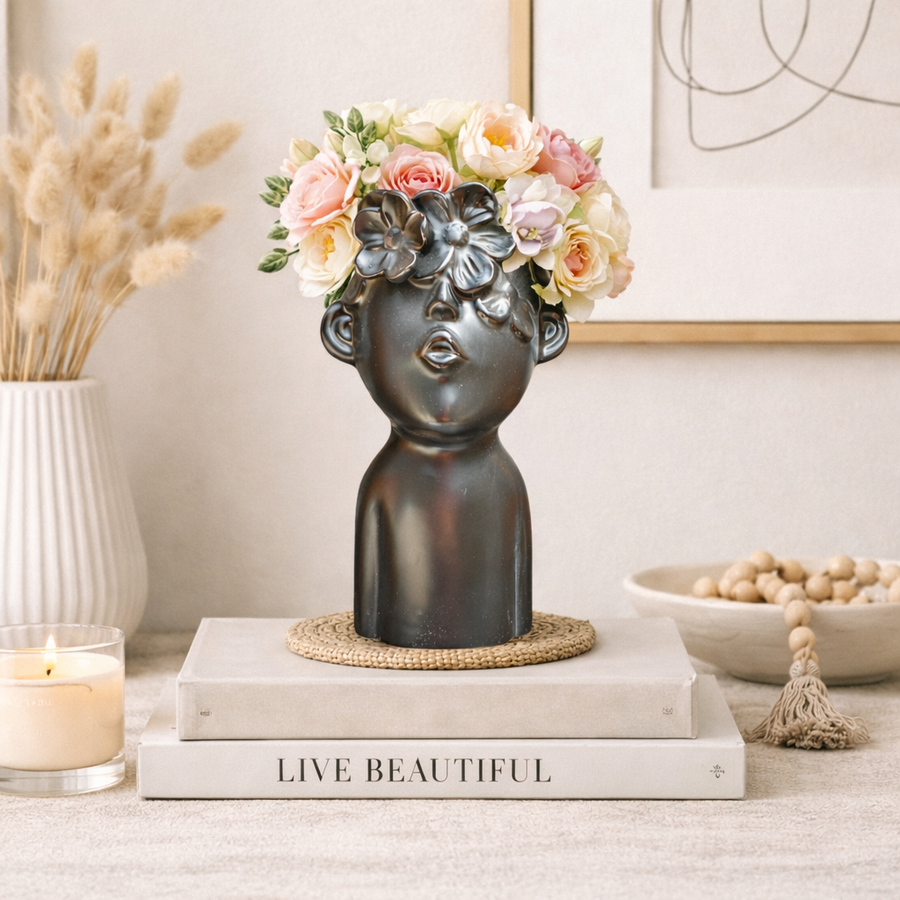 Florero Cara Flores Negro S