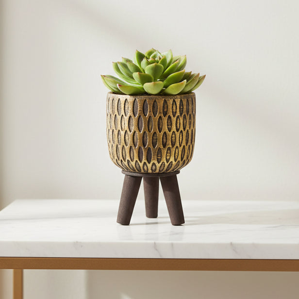 Porta Maceta Dorada S