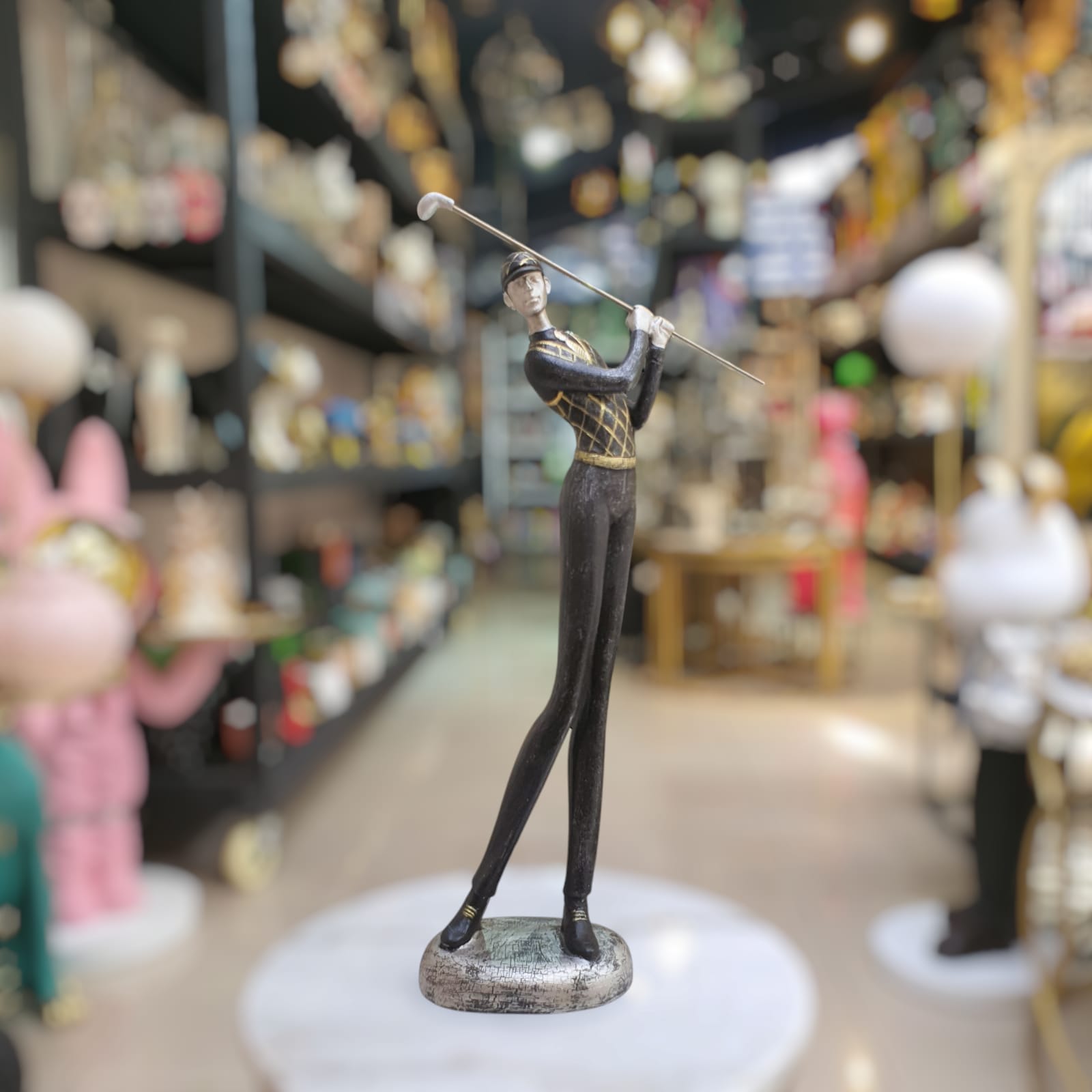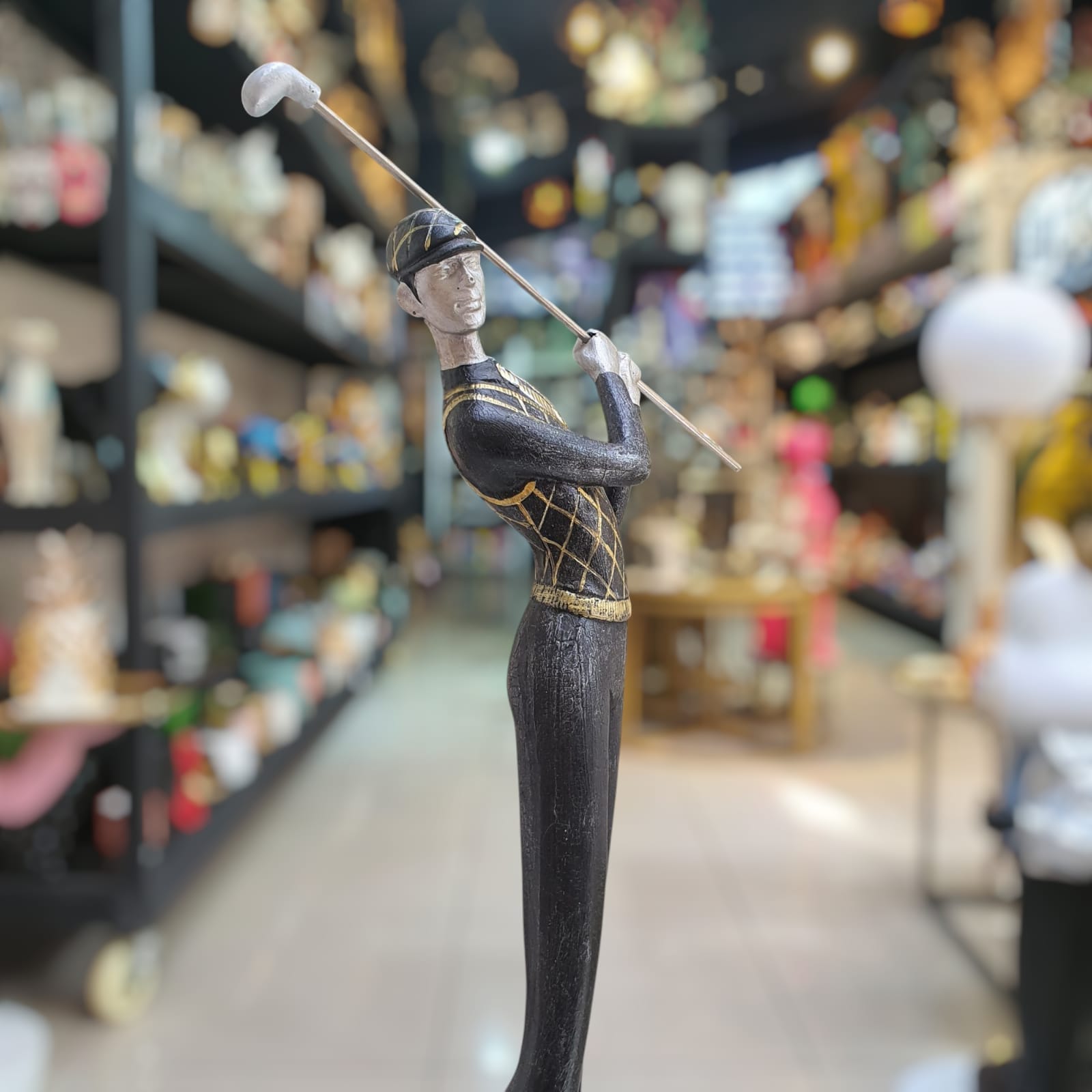 Escultura de hombre golfista con un diseño elegante y dinámico. Su acabado detallado captura la esencia del golf, reflejando precisión y estilo. Perfecto para la decoración de oficinas, salas o clubes deportivos, esta pieza es ideal para amantes del golf que buscan un toque exclusivo en su espacio.
