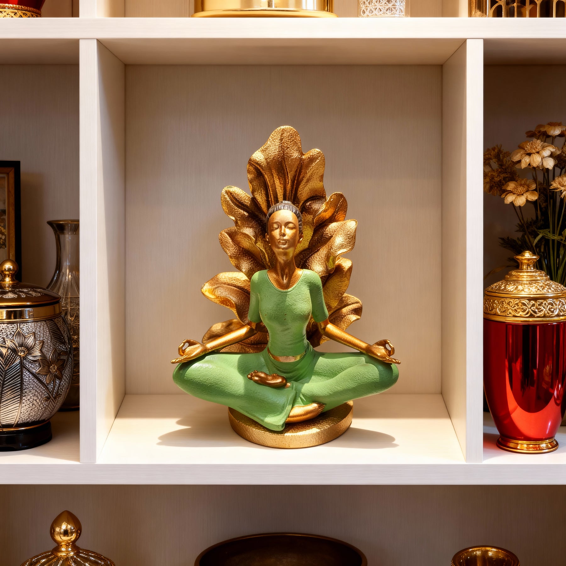 Figura decorativa de resina de una mujer en postura de yoga, con una postura equilibrada y serena. Detalles finos destacan la fluidez de su figura y la armonía de su forma, transmitiendo calma y concentración. Ideal para espacios de meditación o gimnasios, esta pieza aporta un toque de paz y bienestar, perfecta para quienes buscan inspiración y equilibrio en su entorno.