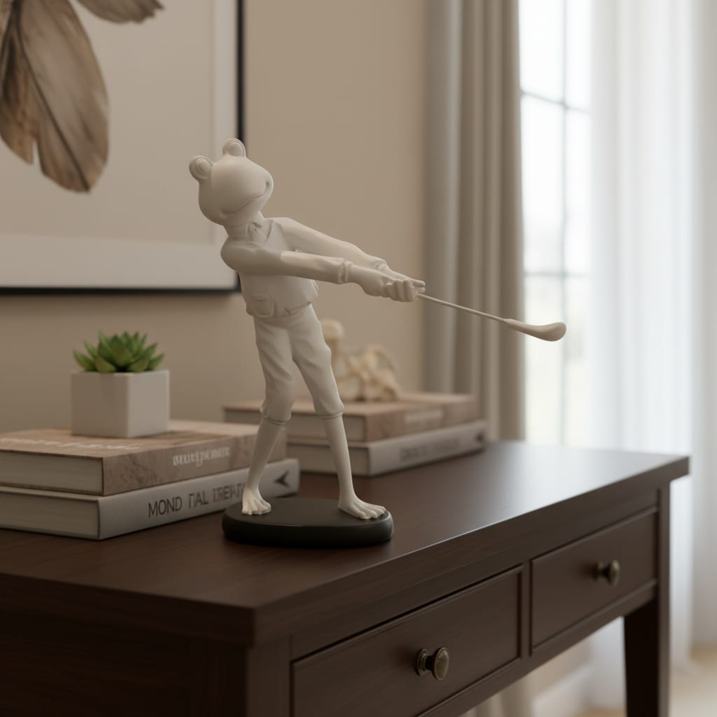 Sapo Jugando Golf: Diversión y Humor. Un sapo esculpido jugando golf, con detalles divertidos y expresiones cómicas. Agrega un toque de humor y alegría a tu espacio.