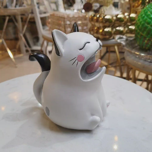 Un gato bostezando, tallado en resina de alta calidad, capturando el momento de tranquilidad. Perfecto para: