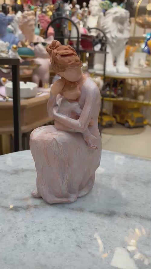 Figura decorativa que refleja la pureza del vínculo entre madre e hijo. Su estilo y acabado en tonos suaves la convierten en una pieza llena de sensibilidad y elegancia. Ideal para dar un aire acogedor y emotivo a tu hogar.