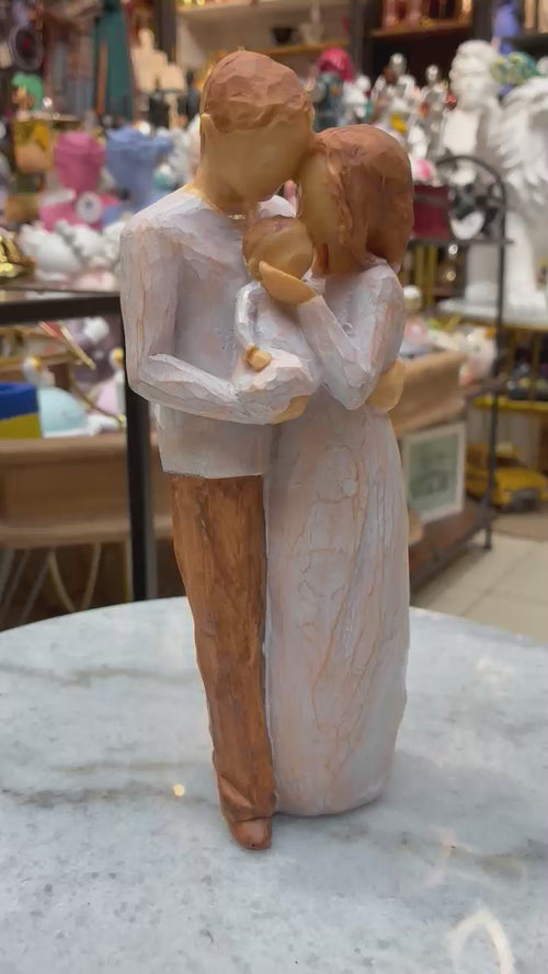 Escultura familiar que representa ternura y unión, ideal para decorar espacios acogedores. Perfecta para salas, habitaciones o como regalo significativo. Su diseño y tonos cálidos aportan un toque emotivo y elegante a cualquier rincón.