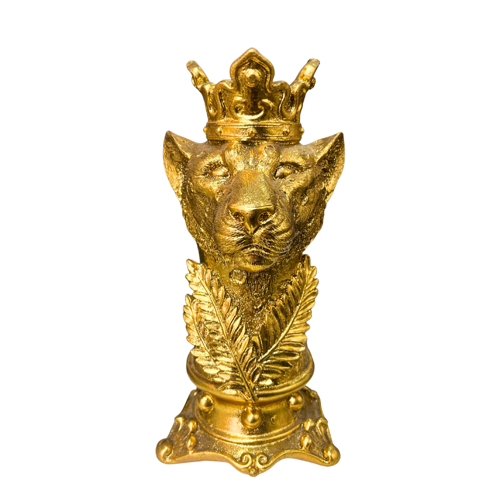 "Rey Leopardo de Decoración Xl-170086:  Busto majestuoso de un leopardo, simbolizando la realeza de la selva.  Detalles realistas en su pelaje y expresión, con una corona imperial en la cabeza.  La resina de alta calidad capta la esencia del felino, creando una pieza decorativa impresionante. Un elemento decorativo que agrega un toque de elegancia y poder a cualquier espacio, perfecto para amantes de la naturaleza y la majestuosidad."