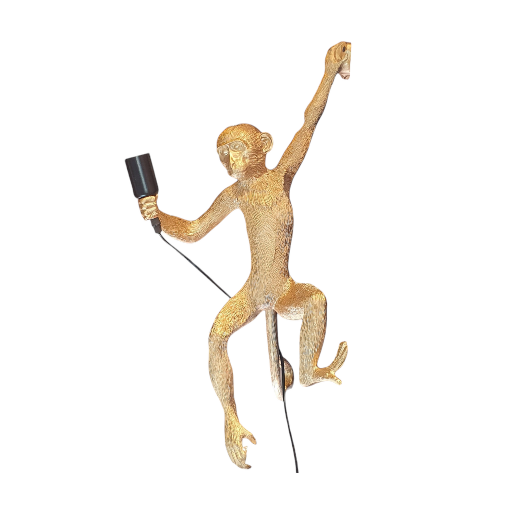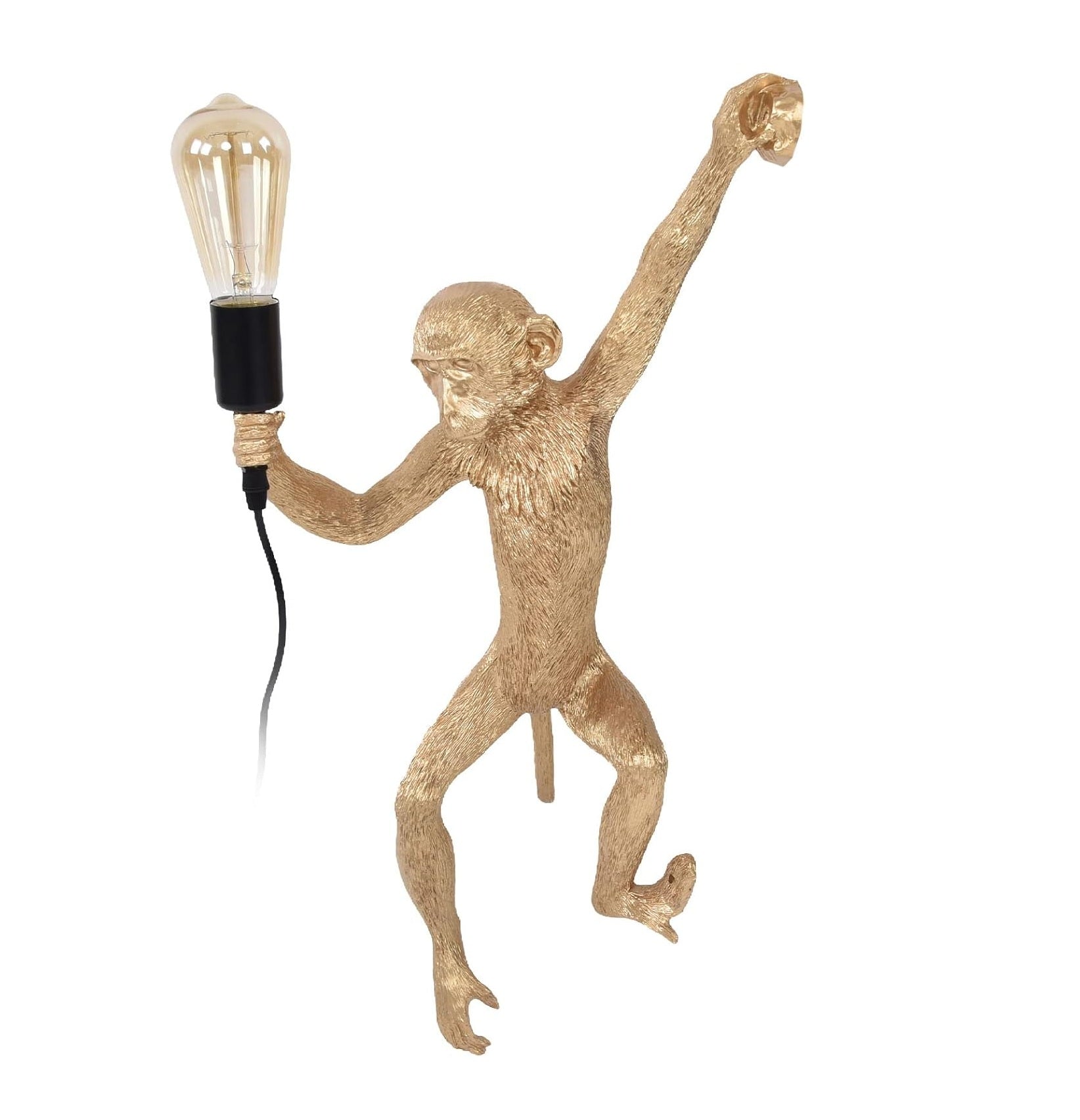 Lámpara de pared con diseño de mono, perfecta para dar un toque original y divertido a tus espacios. El mono sostiene una bombilla, creando un efecto llamativo y funcional con  acabados elegantes, combina arte y practicidad. Ideal para salones, dormitorios u oficinas, es compatible con bombillas LED o tradicionales. Añade carácter y estilo a tu decoración con esta lámpara única y creativa.