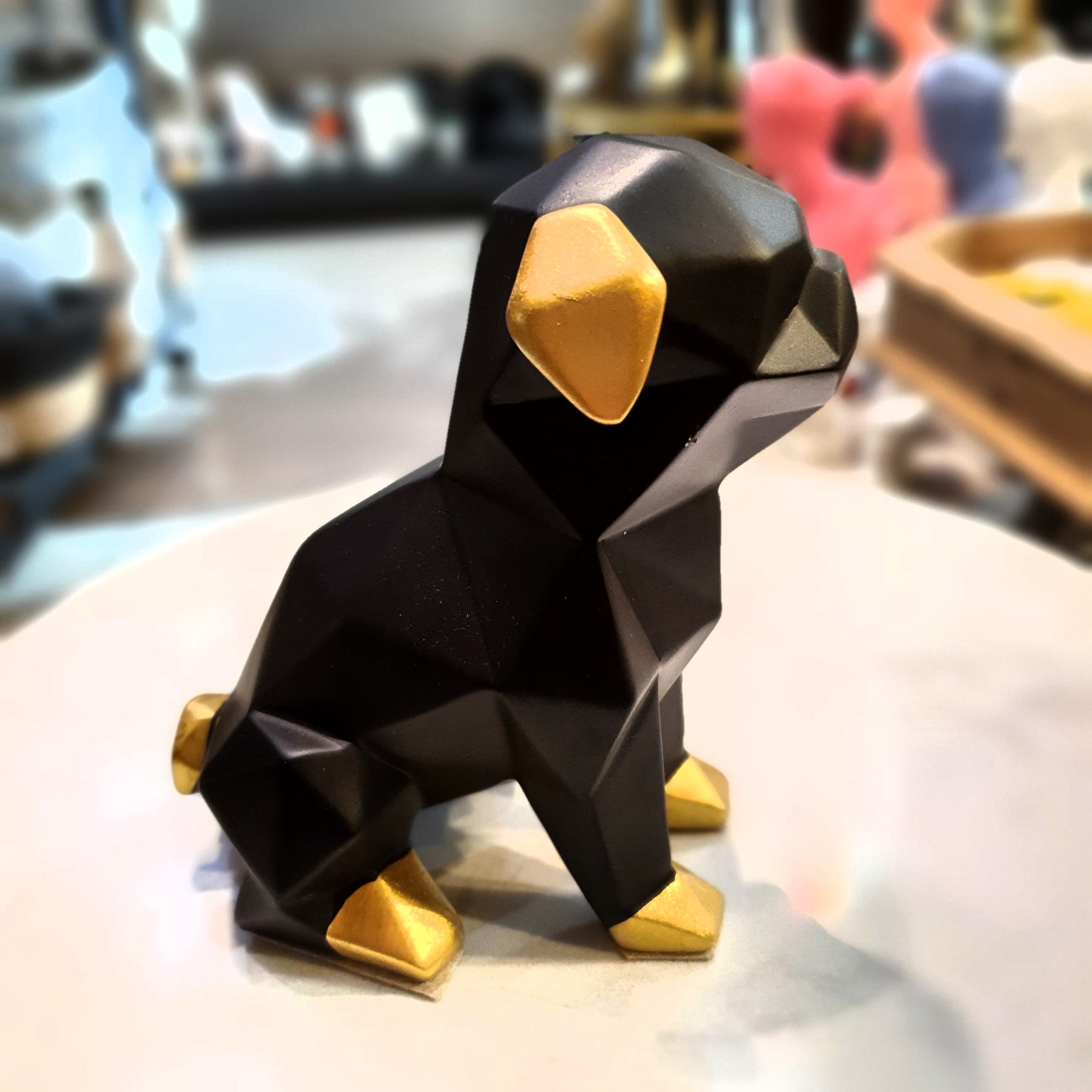 Figura moderna y elegante de un perro, representada en un estilo geométrico innovador. Combinación de formas y líneas que crean un diseño único y visualmente impactante. Detalles en resina de alta calidad que reflejan la personalidad juguetona y leal del perro. Un elemento decorativo que combina arte, diseño y amor por los animales, perfecto para agregar un toque de modernidad y alegría a cualquier espacio. Ideal para decorar estantes, mesas de centro, escritorios o estanterías.