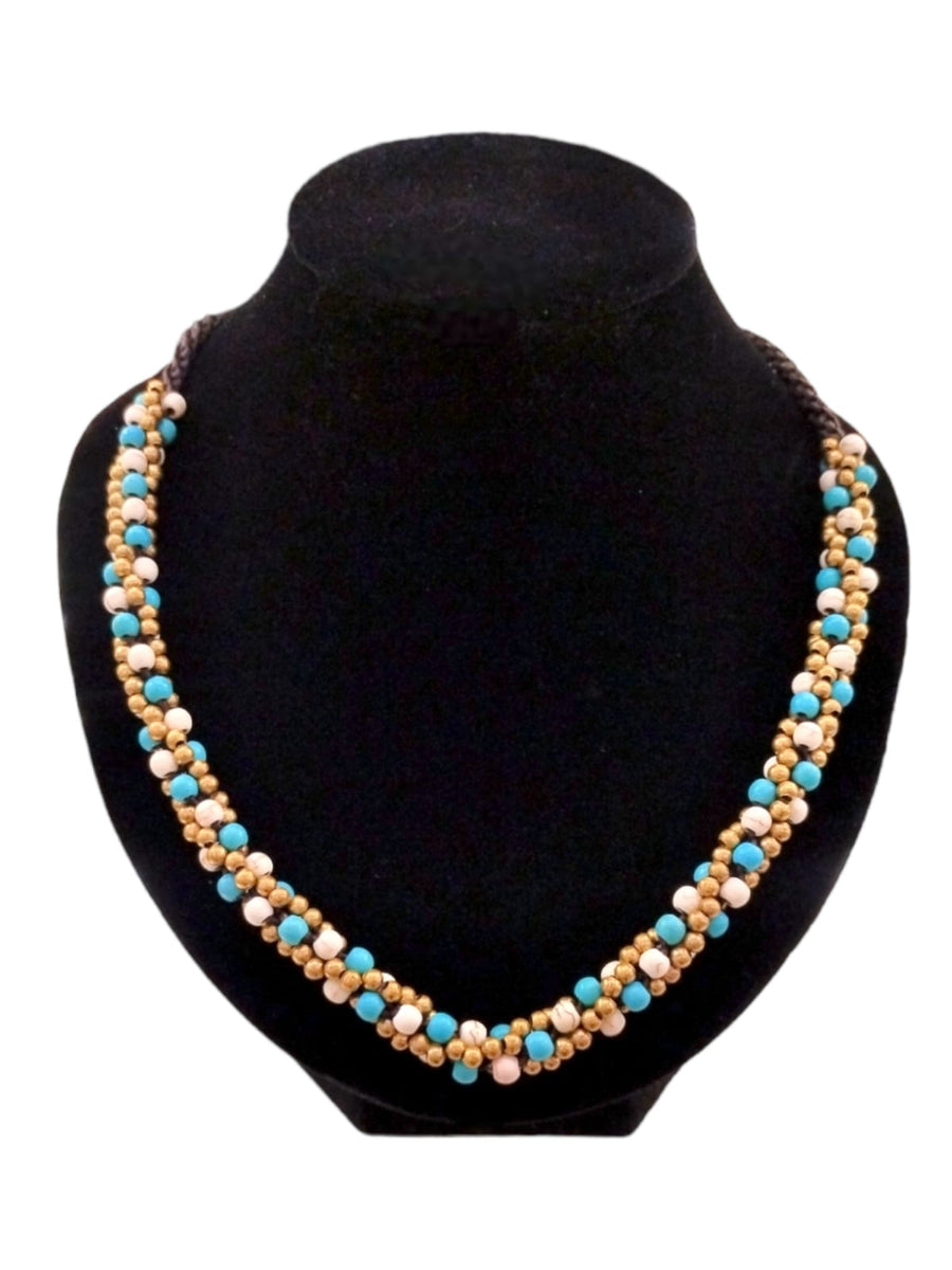 Collar Soka color blanco y turquesa