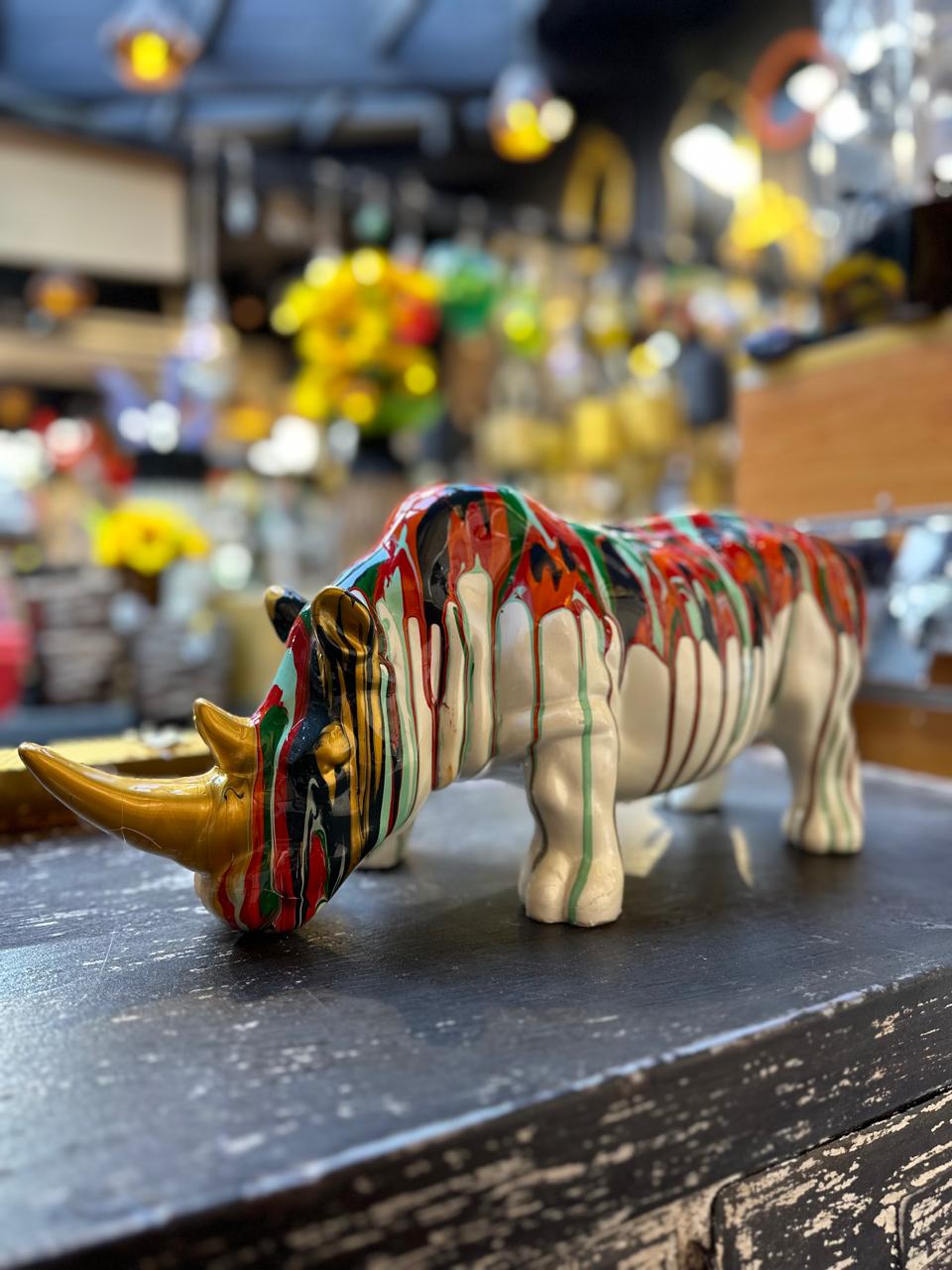 Rinoceronte de Resina: Fuerza y Protección. Agrega un toque de aventura y fuerza a tu espacio con esta impresionante decoración de rinoceronte de resina. Esta pieza única y detallada captura la esencia del rey de la sabana, con su piel rugosa, sus cuernos imponentes y su mirada fiera.