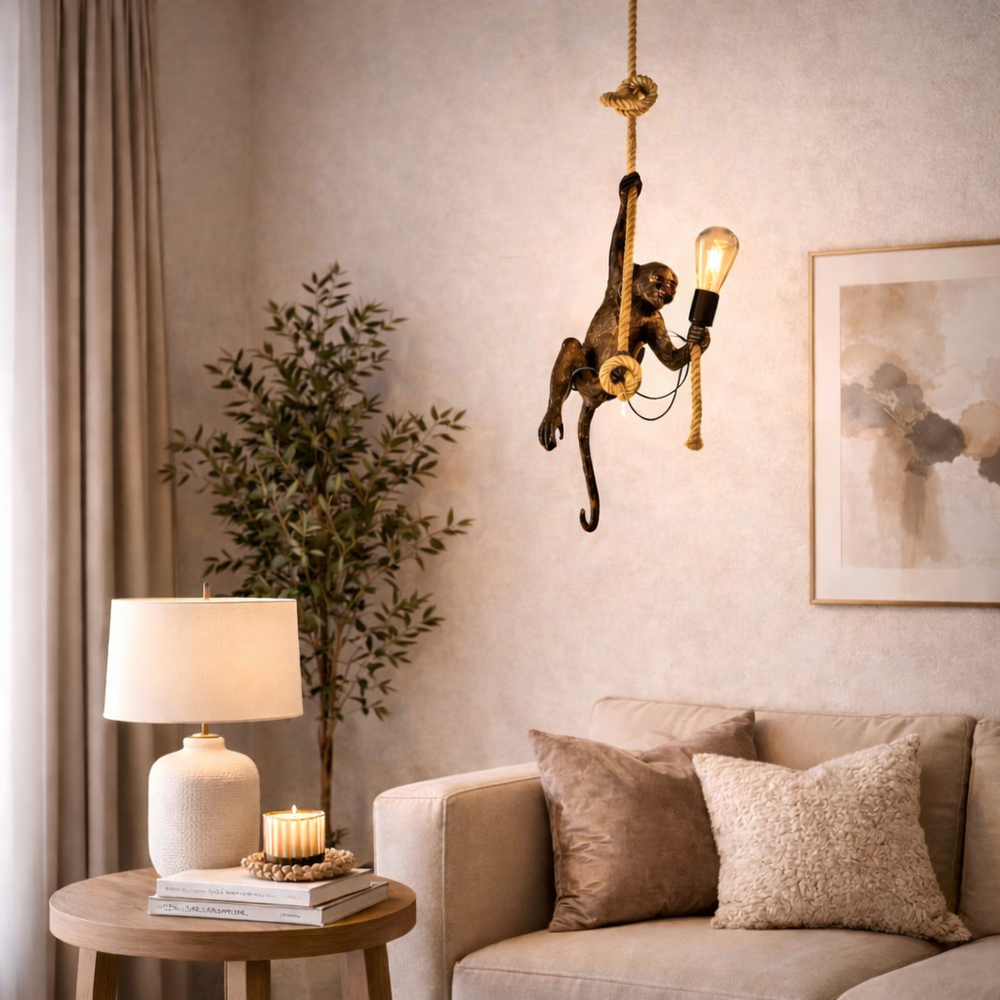 Lampara Mono Gris Colgando