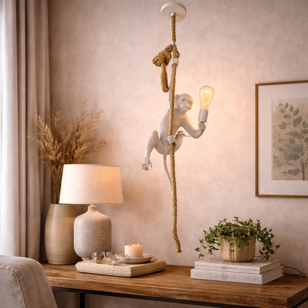 Lampara Mono Blanco Colgando