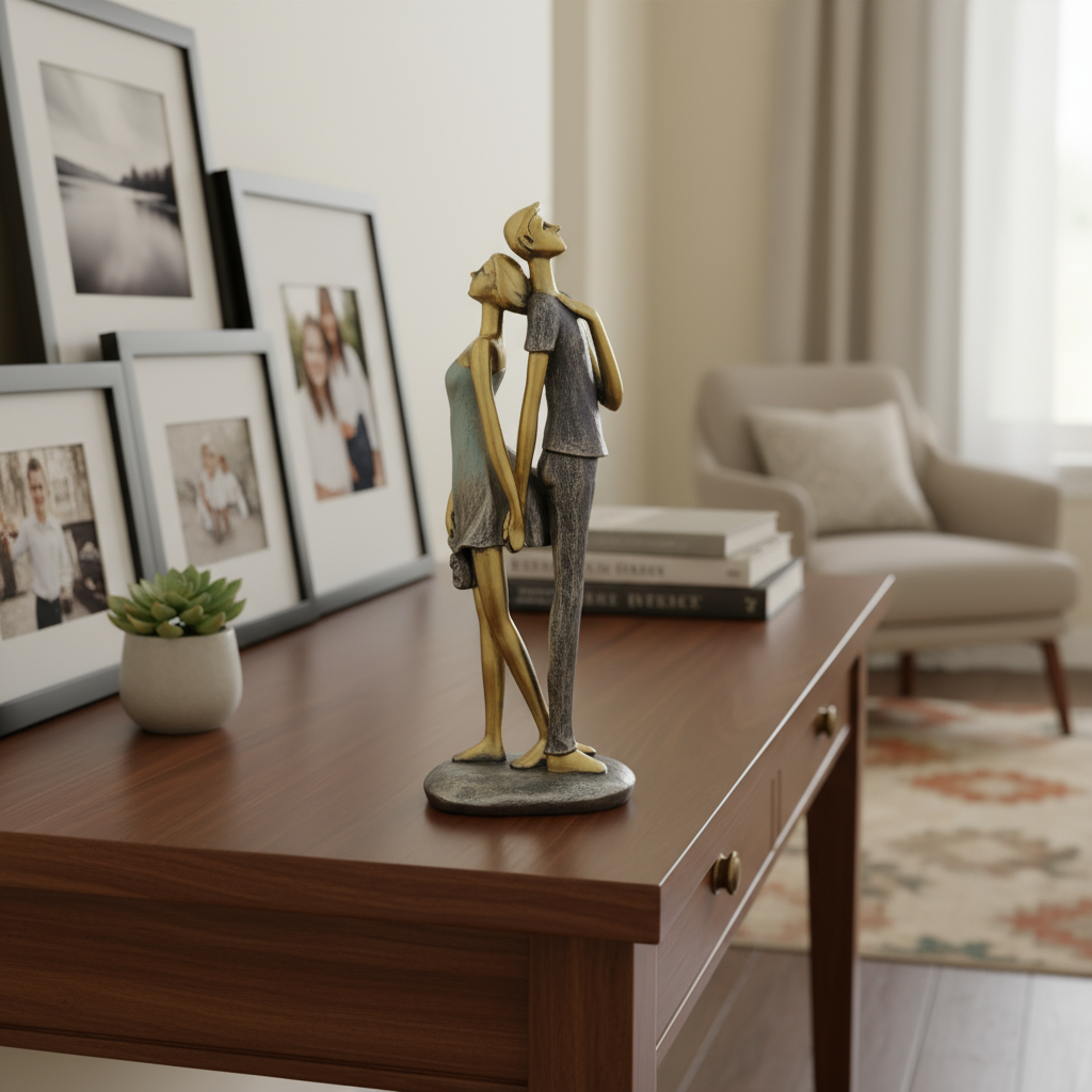 Este adorno de una pareja de espaldas simboliza la conexión y la complicidad. Con su diseño simple y elegante, es perfecto para agregar un toque de romanticismo y serenidad a tu decoración. ¡Una pieza que invita a la reflexión y llena de armonía cualquier espacio!