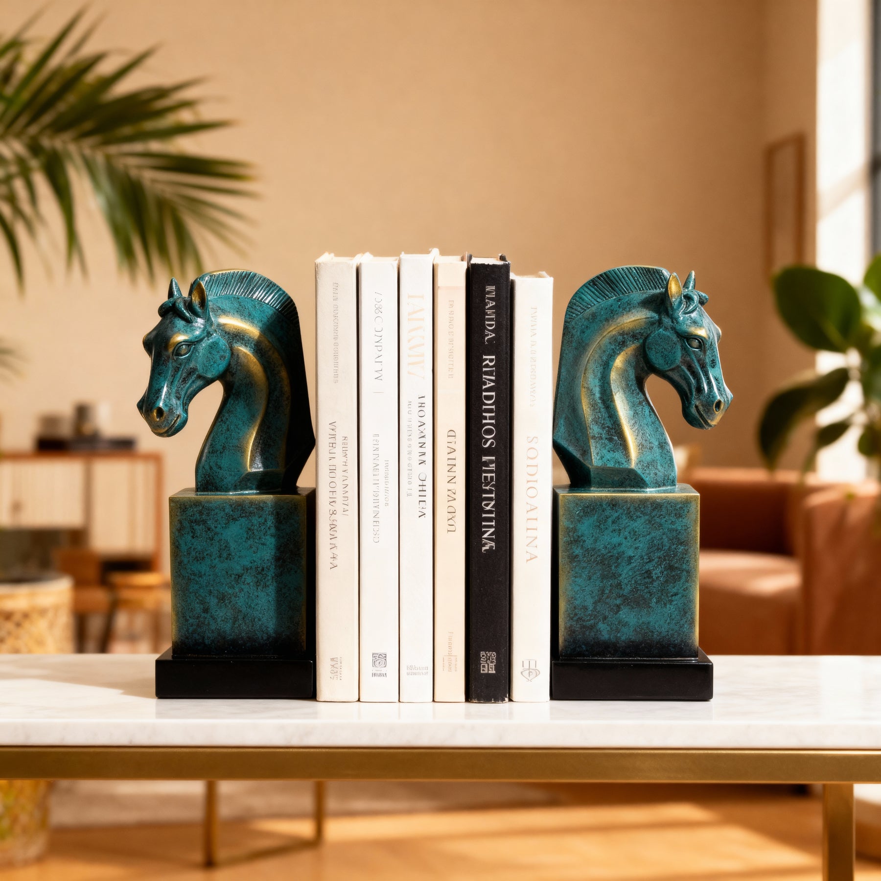 Este sujeta libros con forma de caballos no solo organiza tu estantería, sino que también funciona como un elegante adorno. Perfecto para darle un toque único y sofisticado a tu espacio mientras mantienes tus libros en orden. ¡Un adorno funcional y original!