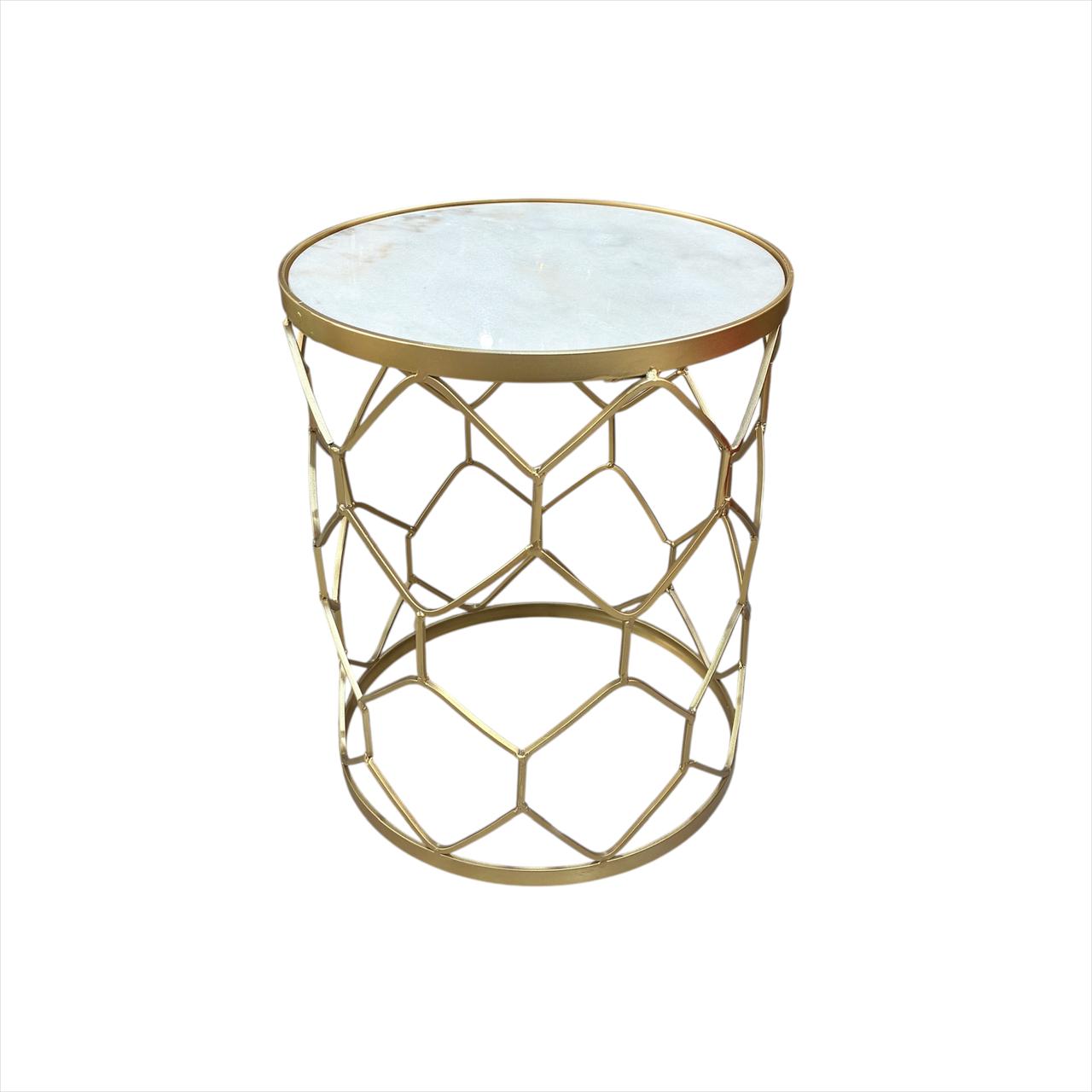 Mesa lateral elegante de diseño geométrico. Su estilo moderno y sofisticado la convierte en una pieza versátil que aporta un toque de lujo a cualquier espacio. Ideal para salas de estar, rincones de lectura o como soporte decorativo junto a sofás y sillones.